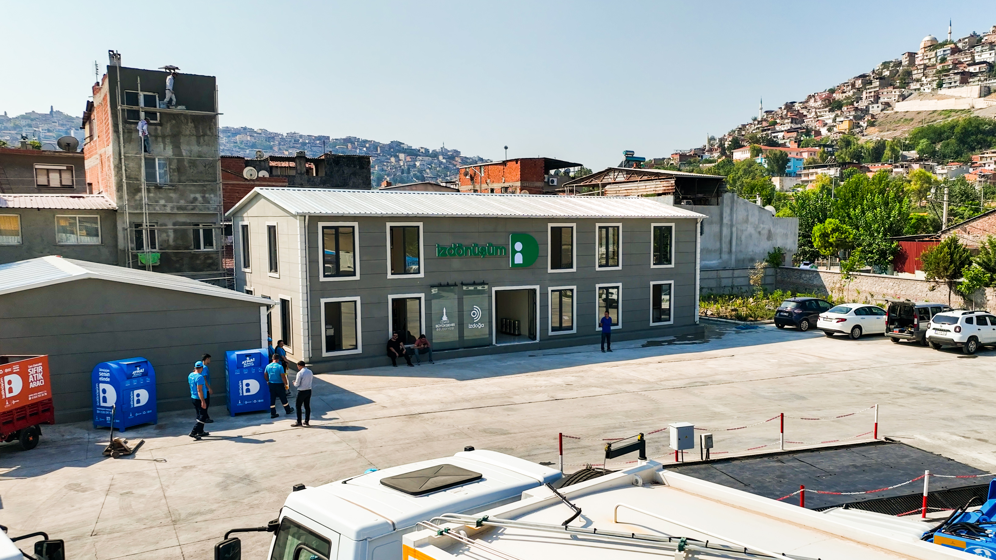 İzdönüşüm Ambalaj Atığı Toplama ve Ayrıştırma Tesisi, İzmir Büyükşehir Belediyesi şirketlerinden İzdoğa A.Ş. tarafından Eylül 2022’de hayata geçirilen bir proje olup, atık yönetiminde adil ve sürdürülebilir bir model sunmaktadır. Sokakta çöp toplayarak geçimini sağlamak zorunda kalan yurttaşları güvenli ve sağlıklı çalışma koşullarıyla istihdam eden tesis, hem sosyal hem de çevresel açıdan önemli bir dönüşüm yaratmaktadır. Tesis, 5.670 m² alan üzerinde faaliyet göstermektedir.